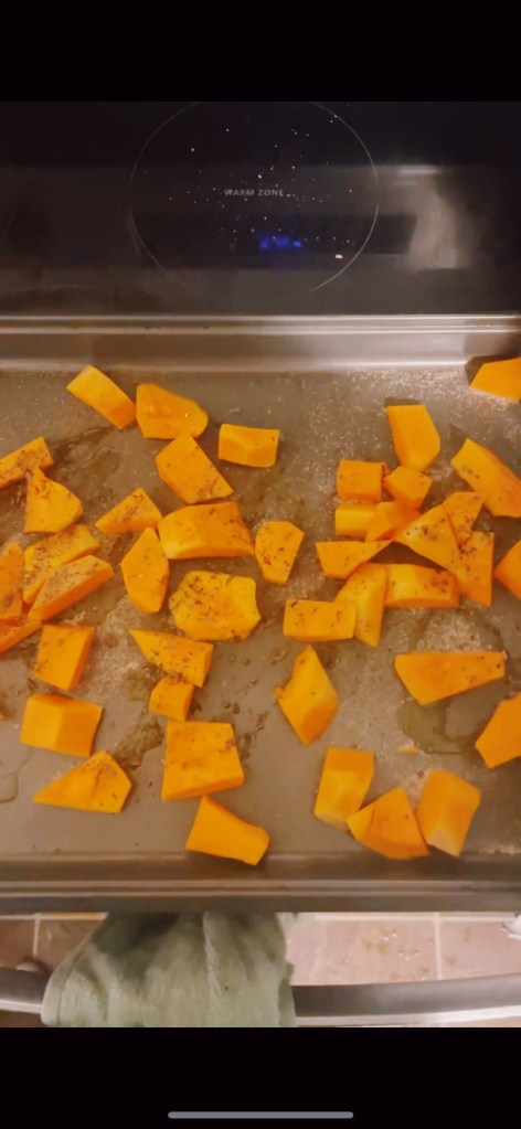 Roast the butternut squash on 400 F for 20-25 minutes.