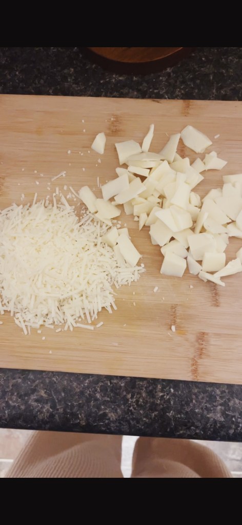 For this recipe I used a white sharp cheddar and asiago cheese.
